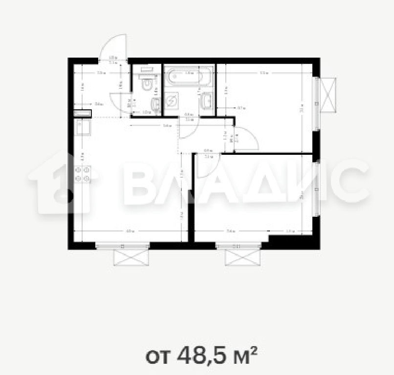 Продаётся двух комнатная квартира, с двумя спальнями 10м2 и 12м2 и большой кухней 17м2, общей площадью 48,5м2 на 10 этаже 25 этажного дома. Квартира с чистовой отделкой.